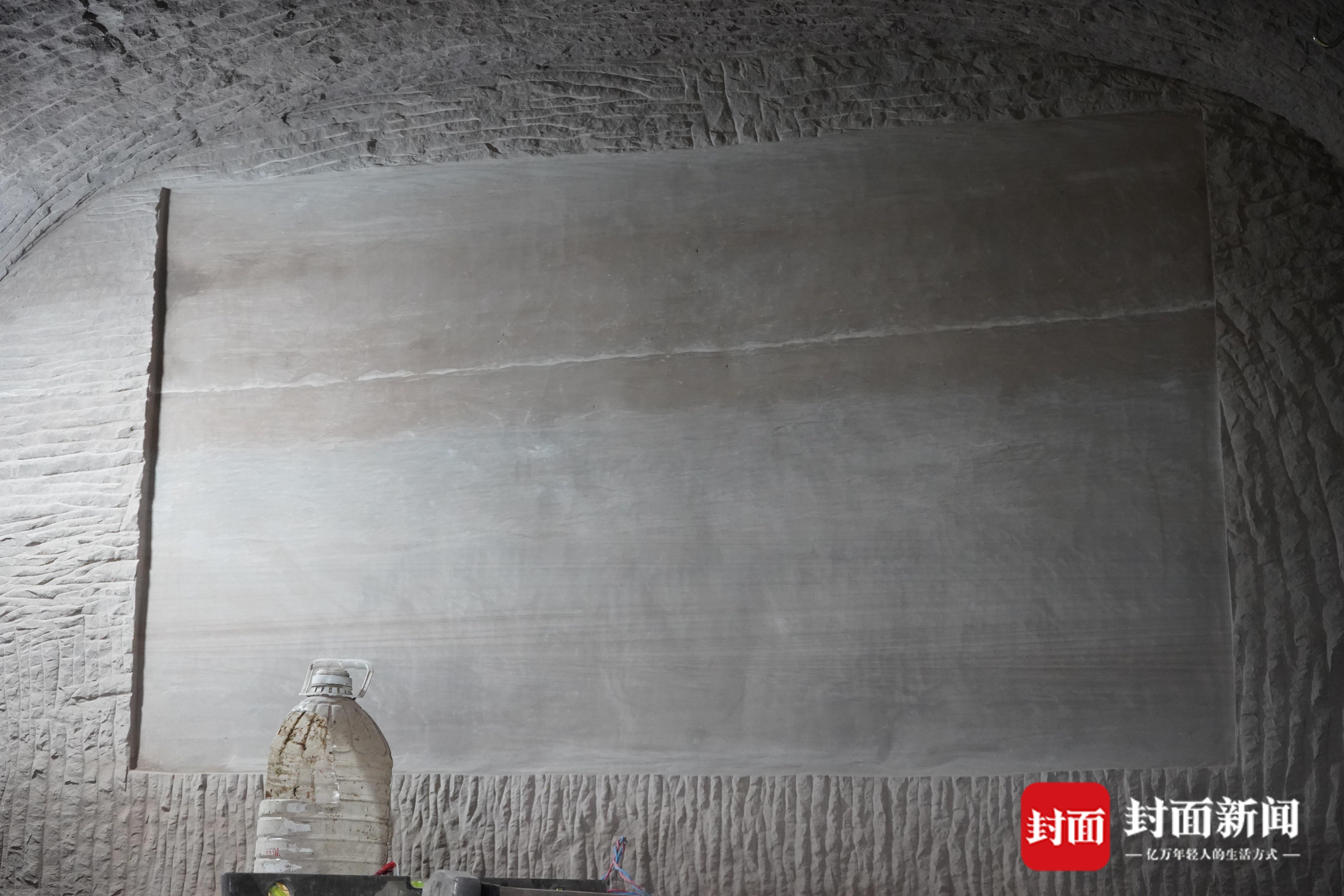 石窟后壁有一片区域被打磨光滑,后期准备刻字,记录整个石窟和汽车工作。